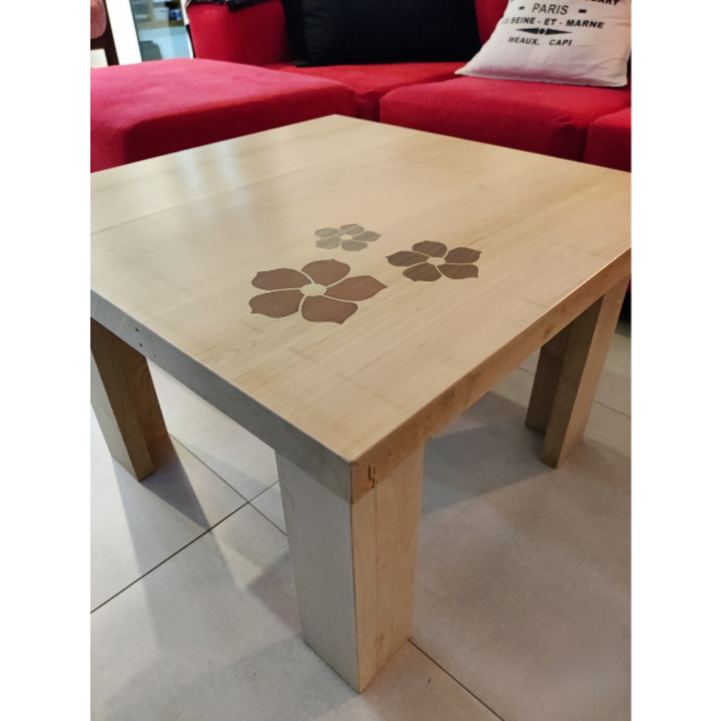 Mesa ratona fabricada con madera Caroba y diseño personalizado de flores 😊.